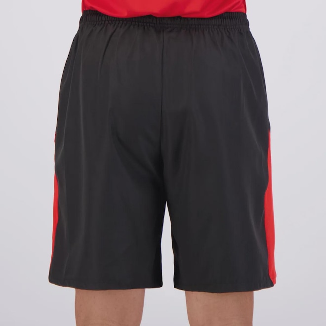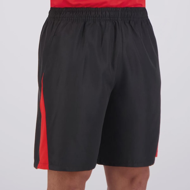 Composição: 100% Poliéster Ajuste: Elástico e cordão no cós Bolsos: Dois frontais, sem zíper Cor predominante: Preta Indicado para: Treino Gênero: Masculino Origem: Nacional Logo: Estampada Forro: Não Dimensões aproximadas (A x L): P: 43 x 35 cm M: 45 x 37 cm G: 50 x 40 cm GG: 52 x 42 cm