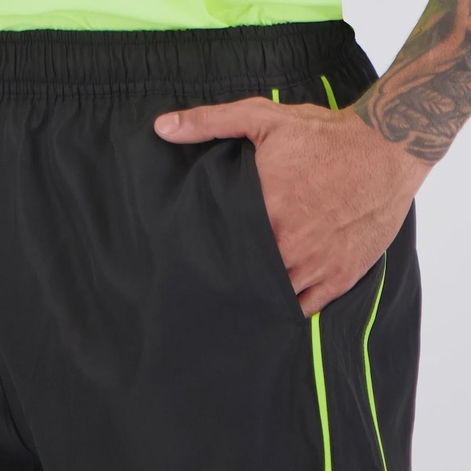 Composição corpo: 100% Poliéster Ajuste: Elástico e cordão no cós Bolsos: Dois frontais, sem zíper Cor predominante: Preto Indicado para: Treino Gênero: Masculino Origem: Nacional Logo: Estampada Dimensões aproximadas (A x L): P: 47 x 39 cm M: 49 x 41 cm G: 51 x 43 cm GG: 53 x 45 cm
