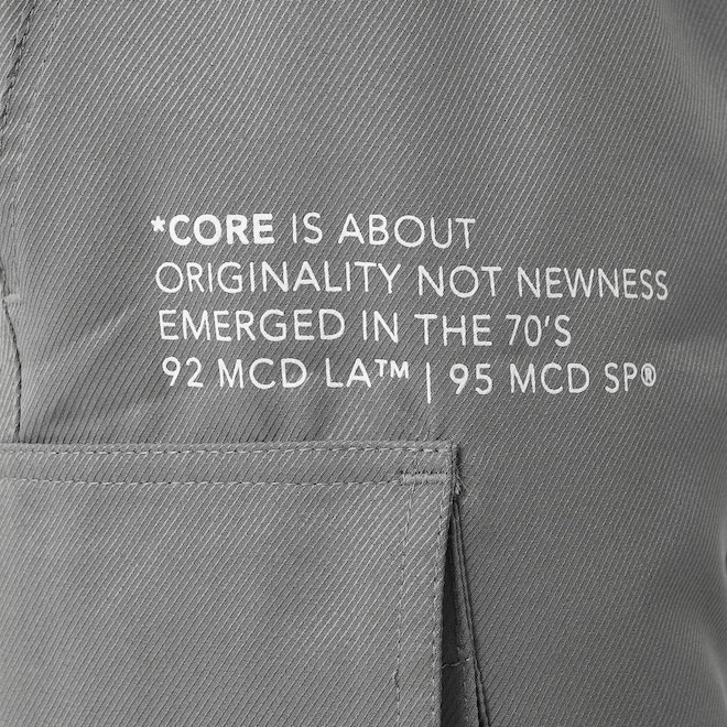 · Etiqueta MCD aplicada sobre a lapela do bolso.