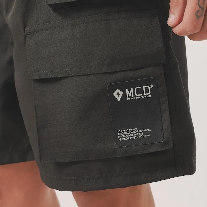 · Etiqueta MCD vertical grande na parte inferior do bolso.