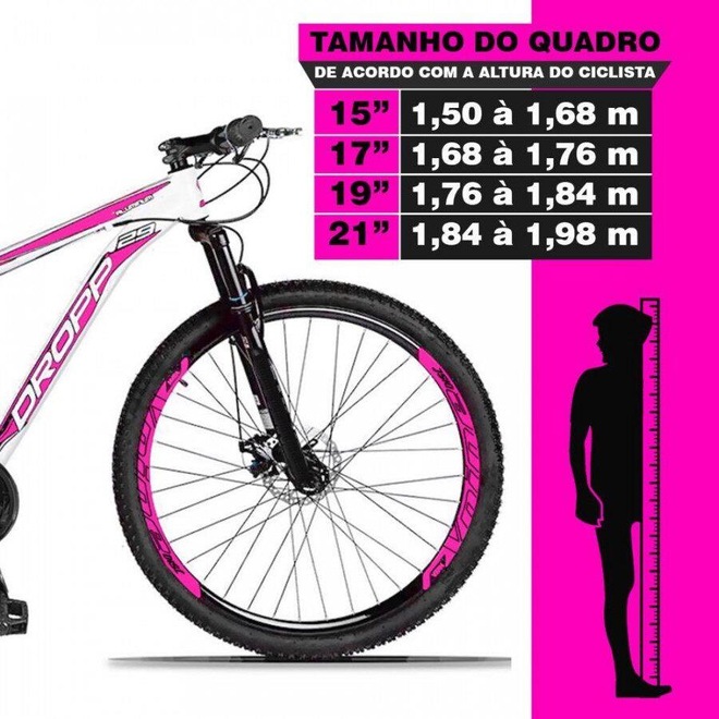 A Dropp Aluminum 27v é uma ótima opção para quem deseja se aventurar em passeios e trilhas leves sem descer da bike naquela subida matadora, por ser relativamente leve e ter 27 combinações de marcha o desempenho em terrenos íngremes é garantido, você também não precisa se preocupar na descida pois os freios a disco hidráulicos garantem segurança nas frenagens!