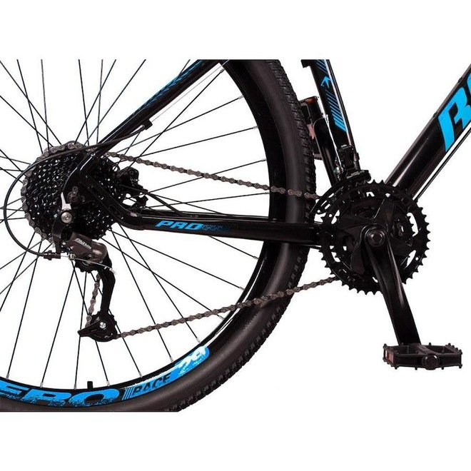 Bicicleta 29 Raider Z3X Pro 27V Câmbio Traseiro Shimano Altus ?Freio Hidráulico Suspensão com Trava ESCOLHA O TAMANHO DO QUADRO: Tamanho 15 indicado para pessoas com altura de 1,50 a 1,68; Tamanho 17 indicado para pessoas com altura de 1,69 a 1,76; Tamanho 19 indicado para pessoas com altura de 1,77 a 1,84; Tamanho 21 indicado para pessoas com altura de 1,85 a 1,98. Desbrave novos horizontes com a Bicicleta Z3X Pro 27V. Equipada com câmbio traseiro Shimano Altus, Freios Hidráulicos e Suspensão com Trava no Ombro que proporcionará controle e estabilidade em terrenos variados. Com design aerodinâmico e componentes de qualidade, esta bicicleta é perfeita para aventureiros em busca de emoção e desempenho. Descrição dos Componentes: QUADRO: Marca Raider - Modelo Z3x-Pro em Alumínio 6061 / Brilho SUSPENSÃO: Aro 29 - 100mm Trava no Ombro TROCADOR: Engate rápido - 27V / imp. CÂMBIO DIANTEIRO: Shimano 3v CÂMBIO TRASEIRO: Shimano Altus 9v Cassete: k7 index 9v PEDIVELA: '' Aço CORRENTE: Index 27v FREIOS: Disco 160mm - Hidráulico CUBOS: 36 Furos em Alumínio Cassete - Esferados AROS: Aero em alumínio parede dupla 36f PNEUS: Aro 29 cravo baixo CÂMARA DE AR: 29 x 1.95 bico grosso MOVIMENTO CENTRAL: Roller 122.5 '' Selado MOVIMENTO DE DIREÇÃO: Aheadset '' semi integrado ESPAÇADOR: Aheadset GUIDÃO: '' Aço SUPORTE DE GUIDÃO: '' CANOTE DE SELIM: '' Aço BANCO / SELIM: Sport PU ABRAÇADEIRA: C/ Blocagem PEDAL: Nylon plataforma '' OBSERVAÇÕES - Pode haver alguma diferença entre a imagem e o produto real, devido ao lote e ano de fabricação! MONTAGEM Indicado que seja realizado em oficica especializada, necessita montagem apenas do selim, pedais, guidão e roda dianteira. GARANTIA 3 Meses para peças e 1 Ano para o Quadroref: M0ZS55