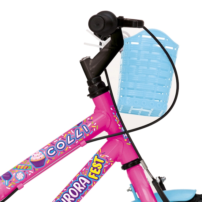 O modelo Colli Aurora aro 16 acompanha rodinhas laterais, que auxiliam no início da aprendizagem do equilíbrio, e protetor de corrente, que evita que a criança se machuque.
