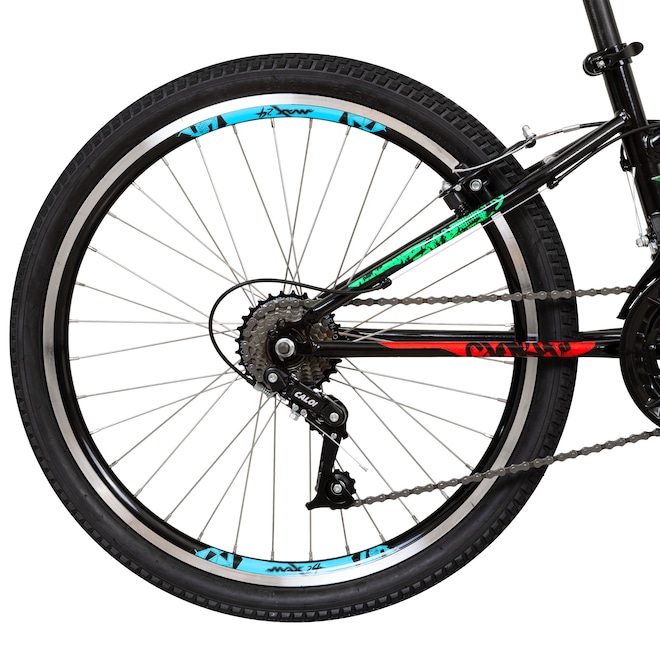 Alumínio Parede DuplaCubo Aço Pedal Plástico Pedivela Aço - com chain guard - 152mm - 42/34/24 Movimento Central Neco B887W Corrente HV-500 Cassete/Roda Livre Roda livre 07 velocidades - 14-28D Manopla Borracha Movimento de Direção Standard Alavanca do Freio Plástico Canote do Selim Aço 27.2x300 – ajuste com quick-release Selim Caloi Infantil Conteúdo da Embalagem 1 Bicicleta Desmontada Garantia do Fornecedor 2 anos no Quadro