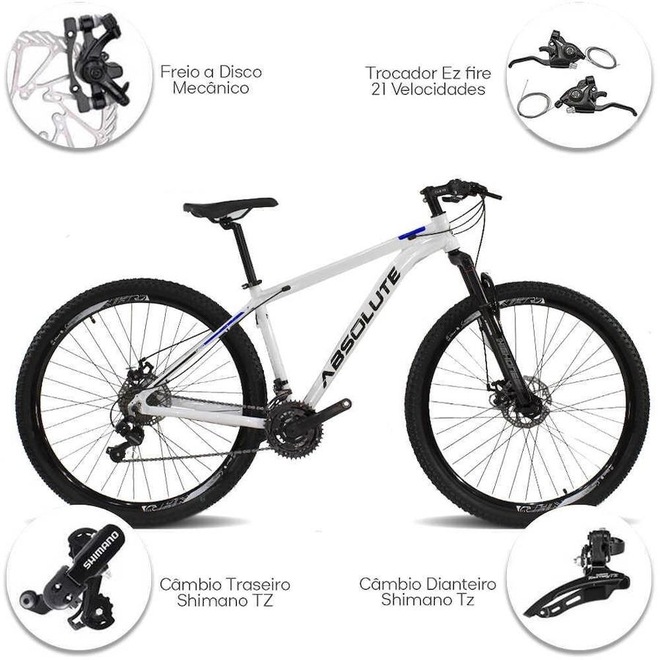 Bicicleta Aro 29 Absolute Nero Aluminio Câmbios Shimano 21V Freio a Disco