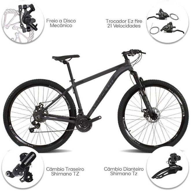 Bicicleta Aro 29 Absolute Nero Aluminio Câmbios Shimano 21V Freio a Disco
