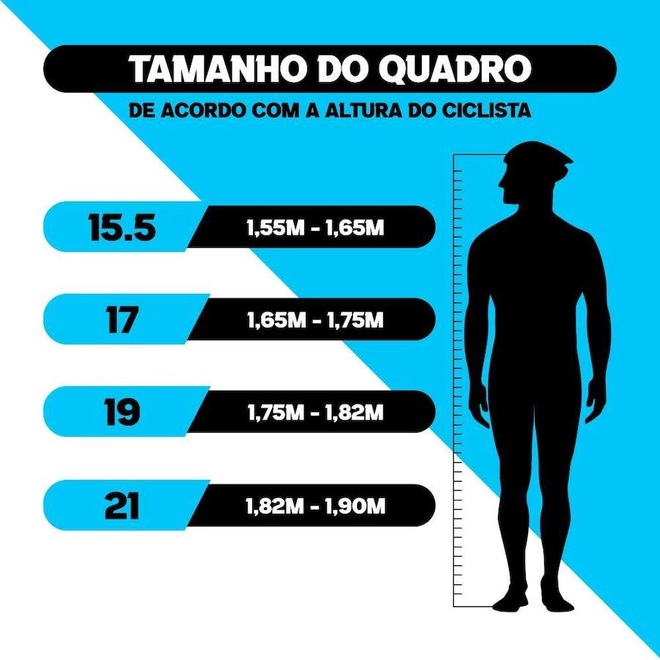 Altura do ciclista: 1,55 até 1,65m – Tamanho de quadro 15,5