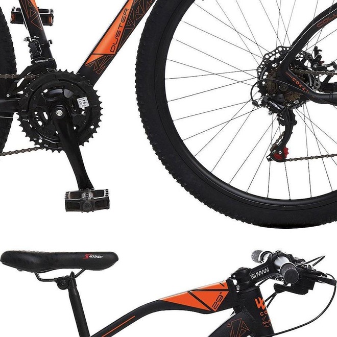 Bicicleta Esportiva Aro 29 Shimano 21v Suspensão Freio a Disco Duster Quadro 17 Alumínio Preto/Laranja - Colli Bike é a melhor para praticar esportes e utilizar no dia-a-dia, sua suspensão garante maior estabilidade e excelente conforto em suas pedaladas, produto com design exclusivo e peças de excelente qualidade para deixar o ciclista satisfeito.Este produto é o melhor para aumentar sua performance e tornar seu pedal mais prazeroso!