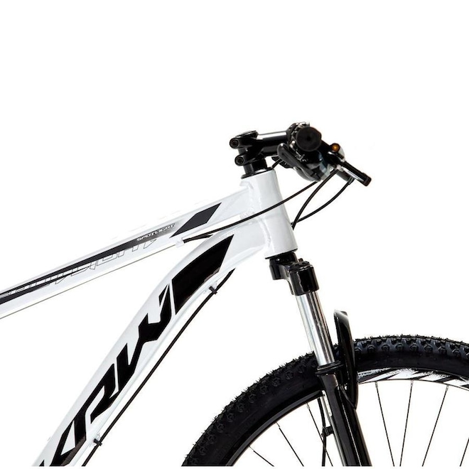 O guidão reto oferece maior controle e conforto durante a condução, enquanto a suspensão dianteira absorve impactos, permitindo que você enfrente trilhas com confiança. A alavanca de câmbio Ez-Fire e os câmbios Shimano TZ garantem trocas de marchas rápidas e precisas, aprimorando sua performance.