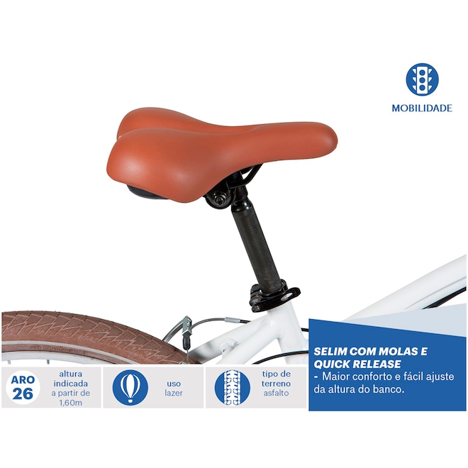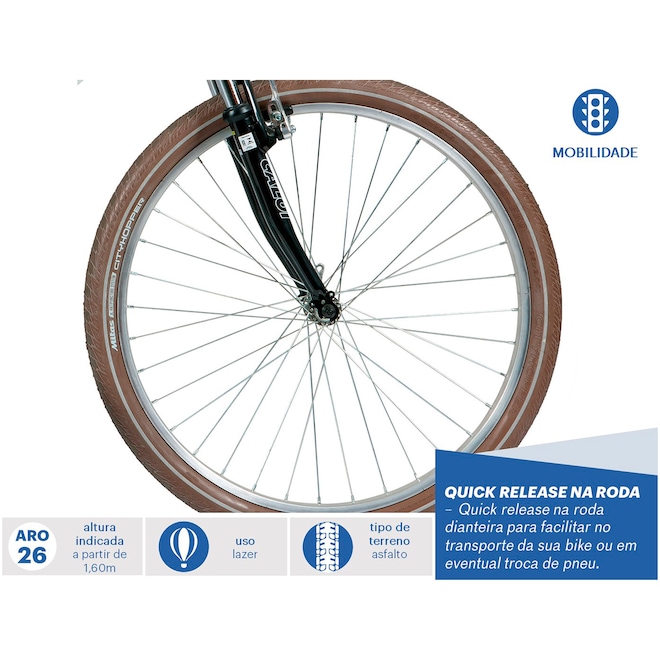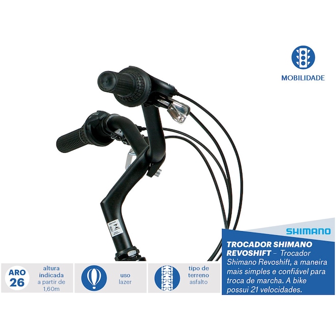 A Bicicleta Aro 26 da Caloi 21 marchas, vem com Raios em Alumínio, Quadro e Garfo com pintura de dupla camada diferenciada, com Guidão Anatômico extra confortável e excelente resistência. Essa linda bicicleta feminina vem equipada com os melhores itens para segurança e conforto pois conta com Freio V-Brake, Pedivela triplo de aço e Cambio Shimano para maior conforto e postura. Essa bicicleta Caloi com certeza é a melhor opção para você que curte pedaladas com segurança e estilo!
