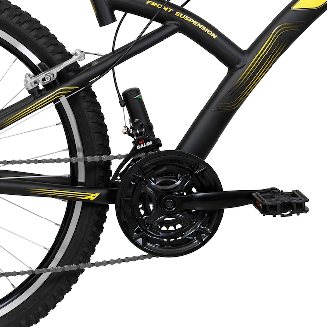 Seu quadro icônico com grafismo moderno garante estilo em qualquer trajeto. Equipada com freios V-brake em alumínio, oferece resposta rápida nas frenagens.