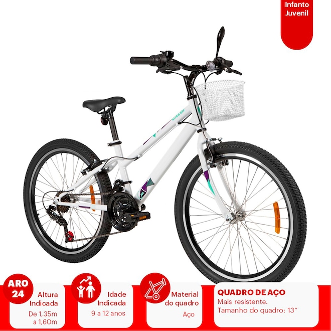 Liberdade, conforto e muito estilo para as meninas que buscam por uma diversão saudável pelos parques e ciclovias urbanas, a Bicicleta Caloi Ceci Aro 24 é um excelente custo-benefício.