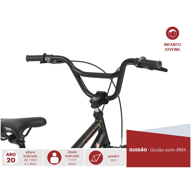 Com a qualidade da marca Caloi, a Bicicleta Caloi Expert aro 20 foi especialmente desenvolvida pensando não só na diversão da garotada como também em seu conforto e segurança. Com design moderno e guidão estilo BMX, a bicicleta Caloi possui quadro e garfo em aço para durabilidade superior, freios V-Brake e selim inovador.