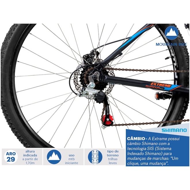 Superar limites com liberdade e conforto é a proposta que a Caloi tem com essa Mountain Bike Caloi Extreme!