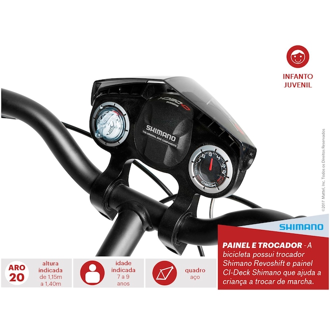 Conheça a Bicicleta Caloi Hot Wheels - Aro 20 - Freio V-Brake - Câmbio Traseiro Shimano - 7 Marchas – Infantil!