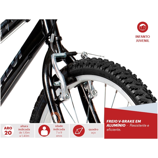 Feita para os garotos velozes apaixonados por aventuras, essa Bicicleta Caloi Hot Wheels possui freios resistentes V-Brake em alumínio, que garantem máxima segurança durante as pedaladas. Com ilustração inspirada nos carros mais velozes do mundo, a bike conta com selim exclusivo com estampa, que permite regulagem para frente ou para trás para uma melhor adequação a estrutura da criança. Além disso, essa Bicicleta Infantil foi equipada com câmbio traseiro shimano e aro 20 para as crianças aproveitarem os divertidos momentos de lazer.