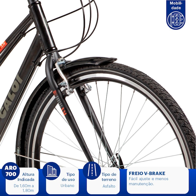 Um modelo icônico cheio de graça e estilo, a Bicicleta Caloi Urbam 700 é um excelente custo-benefício de locomoção sustentável para o transporte nas cidades, parques e ciclovias.