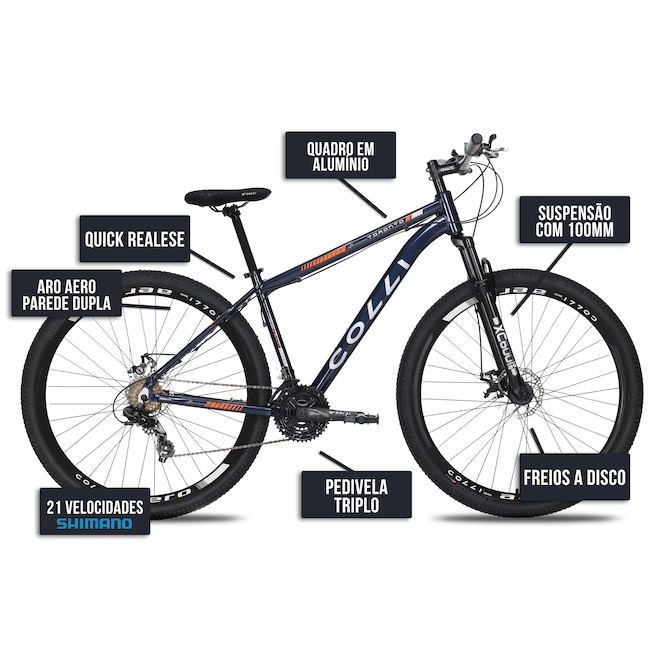 Aro e roda Aro 29″ em aço carbono de parede dupla com 36 furos