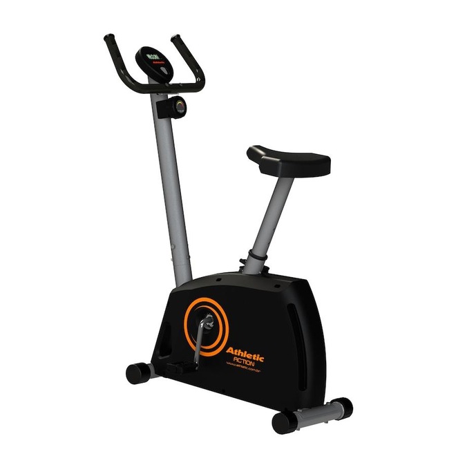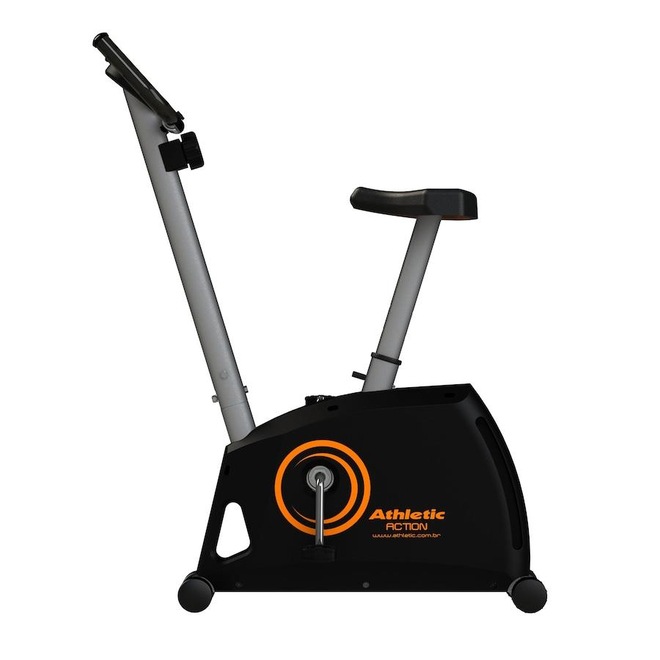 Conheça a nova Bicicleta Athletic Action. A Bicicleta Athletic Action é indicada para usuários de até 140 kg. Seu selim anatômico permite treinos mais confortáveis. Esta Bicicleta Ergométrica é totalmente magnética, e a tração é realizada por correia elástica, o que proporciona um pedal suave e contínuo, sem impacto nas articulações, além de torná-la mais silenciosa. Por não utilizar correntes, a manutenção é mínima. Seu painel conta com as principais funções de monitoramento do mercado, permitindo que você acompanhe a progressão de seu treino.