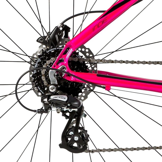 É a bicicleta ideial para as mulheres que querem iniciar no mountain bike. Selim Groove MTB macio e confortável para longos pedais. Quadro em alumínio agora com cabeamento interno, deixando sua bike ainda mais charmosa. Sem contar com a Garantia Vitalícia Limitada do quadro. Componentes Shimano e suspensão Groove com trava, deixam a Indie 50 ainda mais completa para as trilhas.