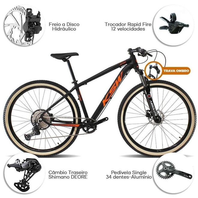 Bicicleta KSW Aro 29 12 velocidades Câmbio Shimano Freio a Disco - Adulto