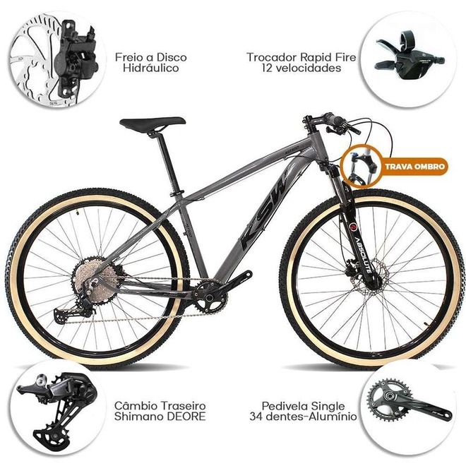 Bicicleta KSW Aro 29 12 velocidades Câmbio Shimano Freio a Disco - Adulto