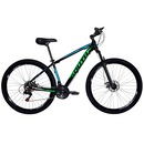 O design é moderno com quadro leve em alumínio, guidão personalizado MTB em aço reforçado e selim ergonômico MTB.