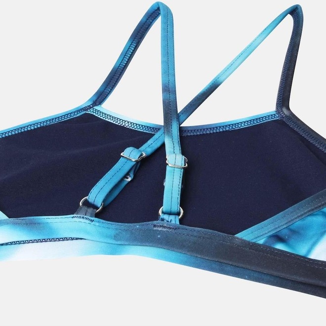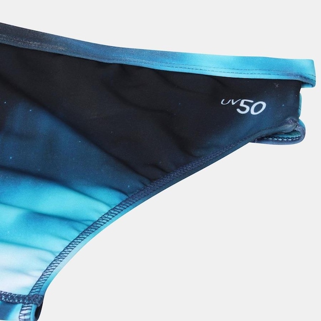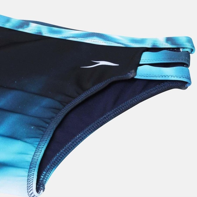 Com estampa de aurora boreal na cor azul lunar, esse biquíni garante mais charme, além de contar com o nome da marca estampado na parte da frente oferecendo um toque especial.