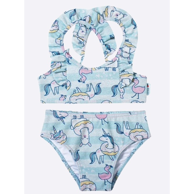 O Biquíni Praia Pool Party Kids Tip Top é a escolha perfeita para as pequenas que adoram brincar sob o sol! Com uma estampa vibrante de unicórnios e uma paleta de cores suaves, este biquíni é tanto divertido quanto estiloso. A parte de cima apresenta uma amarração delicada com babados, enquanto a calcinha, igualmente charmosa, complementa o conjunto com fofura. Equipado com proteção UV50+, este biquíni assegura que as crianças possam se divertir na praia ou na piscina com segurança total.