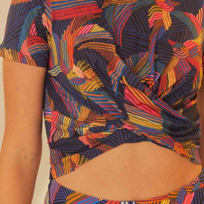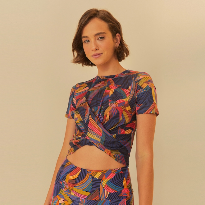 Com design moderno e estampa delicada de andorinhas, esta peça é ideal para compor looks descontraídos e cheios de personalidade.