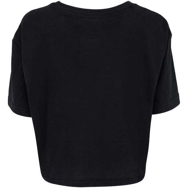 Conta com mangas curtas, a sua gola é careca e modelagem Loose Fit.
