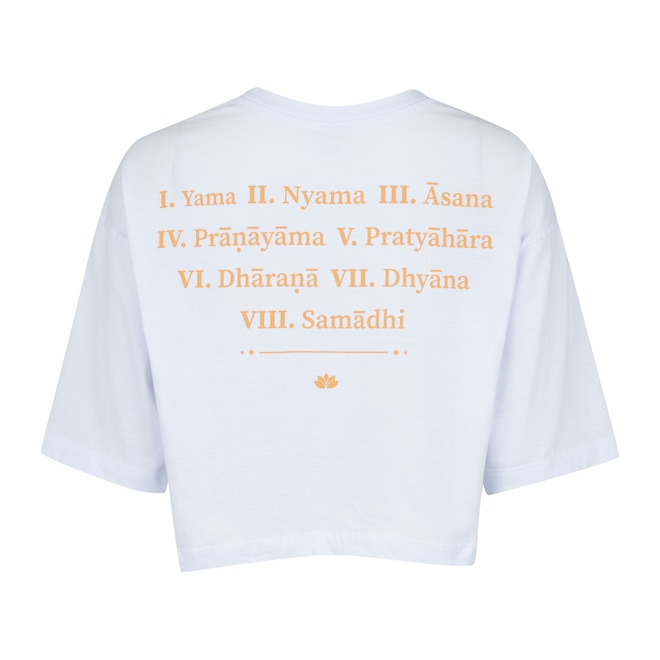 Já a estampa nas costas é personalizada e divulga os 8 passos para a liberdade do yoga sutra. Aproveite o preço e garanta a sua!MODELO VESTE TAMANHO PALTURA: 175 cm