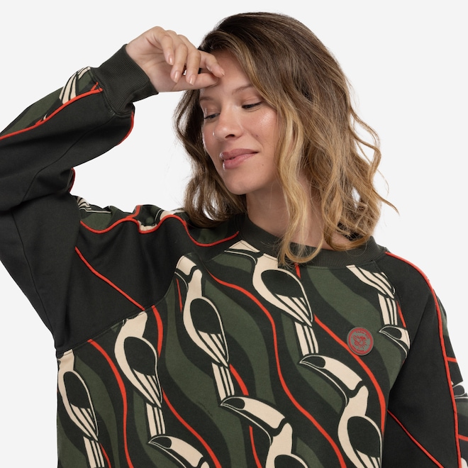 Com estampa gráfica vibrante e caimento confortável, o moletom Farm Tucano traduz o estilo brasileiro com originalidade.