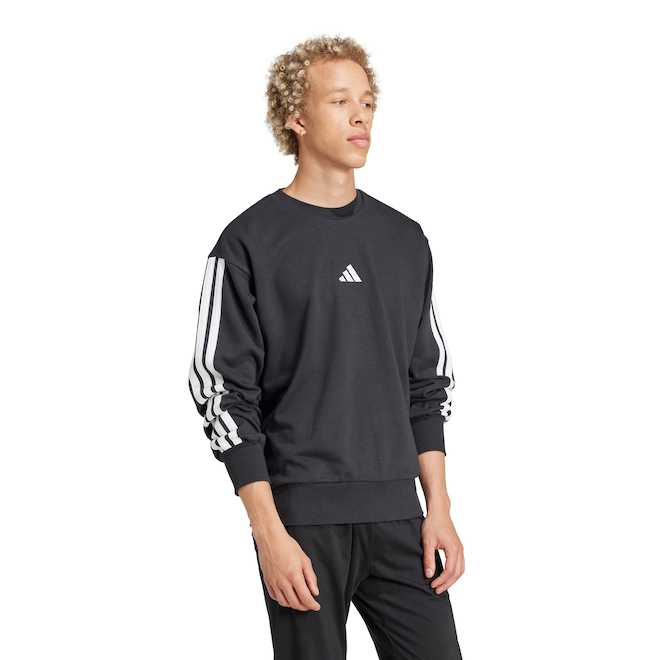 As icônicas Três Listras nas mangas e o logo adidas no peito reforçam o visual esportivo. Ideal para dias mais frios ou momentos de descontração, essa peça é um must-have para quem curte moda casual.
