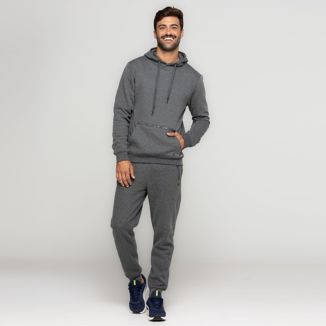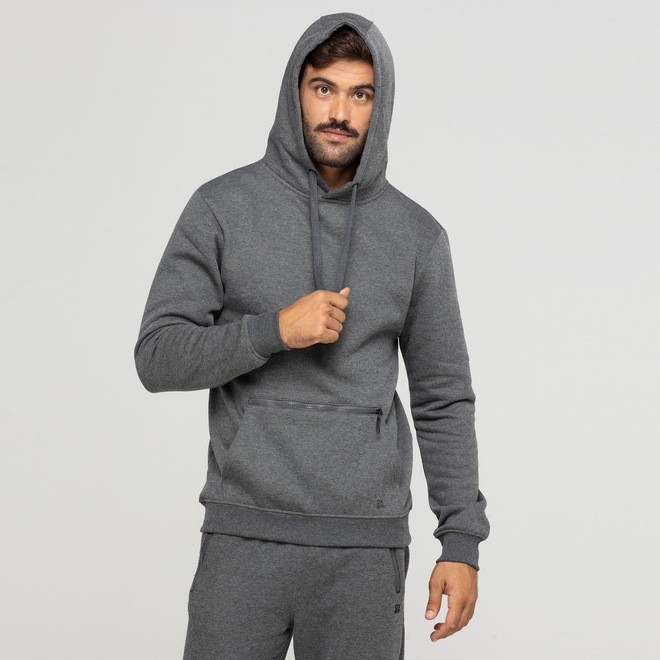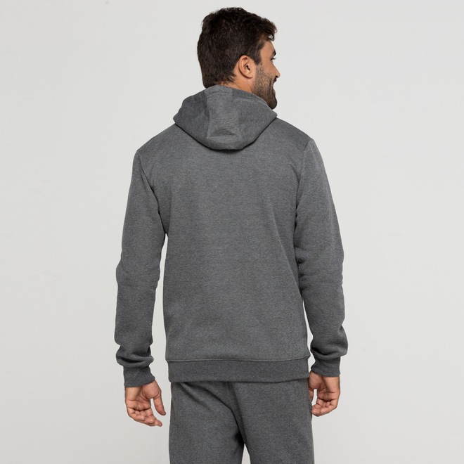 Conta ainda com dois bolsos, um em zíper e outro estilo “canguru” para esquentar as mãos em dias frios, e capuz ajustado por cordão.
