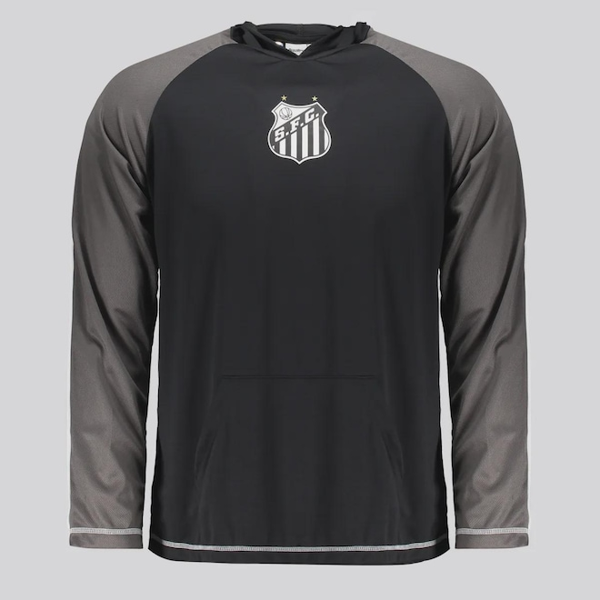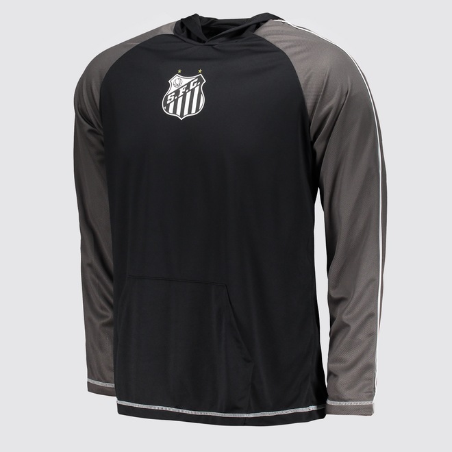 Composição: 100% PoliésterBolso: Um, estilo canguruCor predominante: PretaIndicado para: TreinoOrigem: NacionalClube: SantosGola: CarecaManga: LongaCapuz: FixoDimensões aproximadas (A x L):P: 69 x 51 cmM: 71 x 53 cmG: 74 x 56 cmGG: 76 x 59 cm