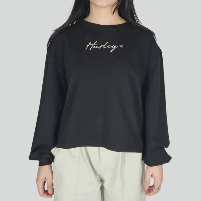 A Blusa Especial Manga Longa Hurley Sea Breeze. Possui manga bufante e estampa em bordado.