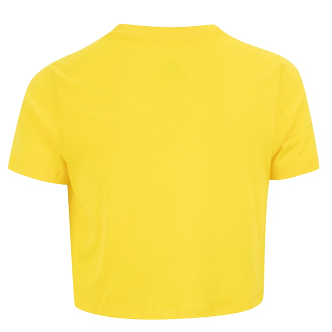 Essa blusa infantil possui barra traseira com corte arredondado e modelo cropped.
