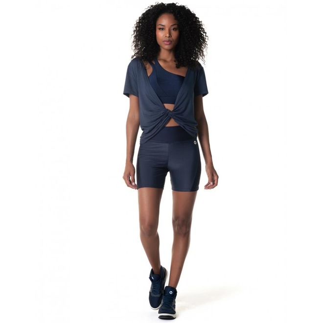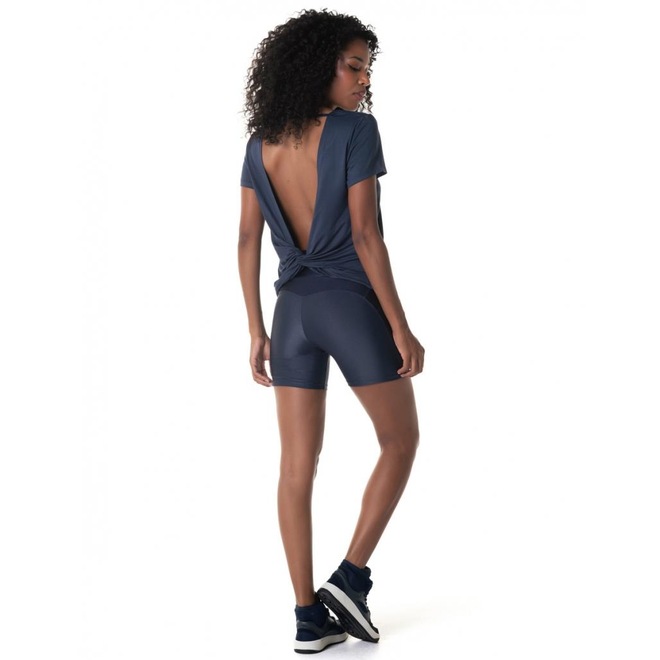 A Blusa Manga Curta Ágora possui modelagem soltinha e costas com recorte contraste em torção.