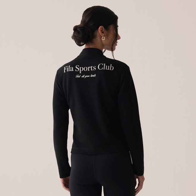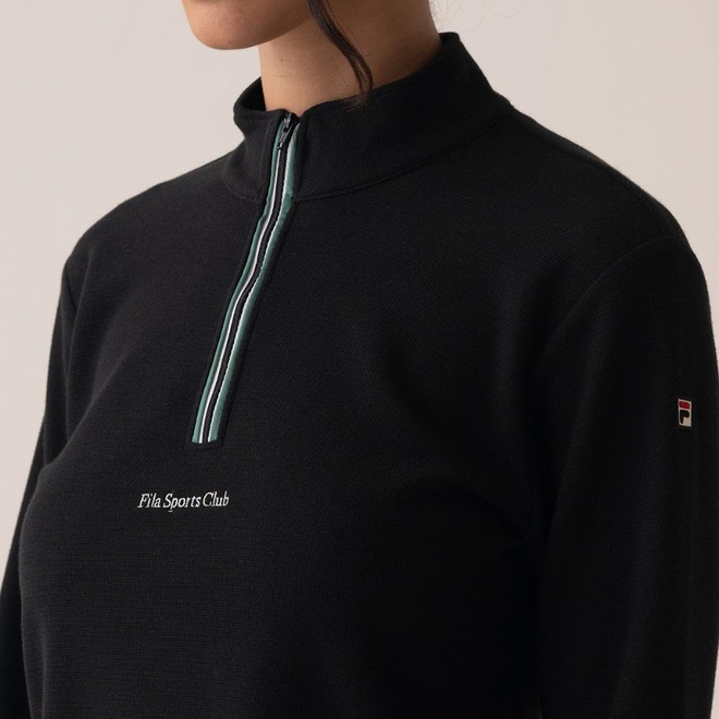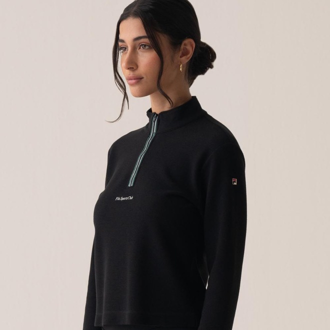 A Blusa de Manga Longa Feminina FILA Regular Sport Club combina estilo esportivo e sofisticação, inspirada nas quadras de tênis. Feita em poliéster com elastano, oferece caimento perfeito e liberdade de movimento. Possui gola média, zíper frontal parcial, estampa "FILA Sports Club" na frente e costas e patch F-Box na manga, destacando o autêntico DNA FILA.ref: M17LRB