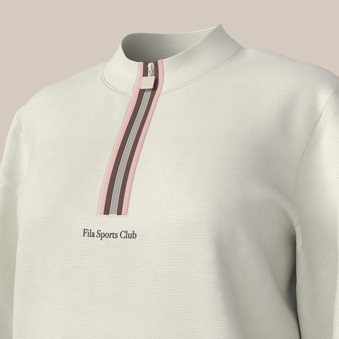 A Blusa de Manga Longa Feminina FILA Regular Sport Club combina estilo esportivo e sofisticação, inspirada nas quadras de tênis. Feita em poliéster com elastano, oferece caimento perfeito e liberdade de movimento. Possui gola média, zíper frontal parcial, estampa "FILA Sports Club" na frente e costas e patch F-Box na manga, destacando o autêntico DNA FILA.