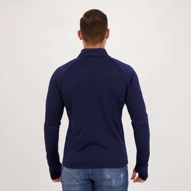 A blusa masculina ainda conta com gola alta com ajuste frontal por zíper, modelagem Slim Fit e abertura para o polegar, auxiliando no máximo aproveitamento na hora das atividades.
