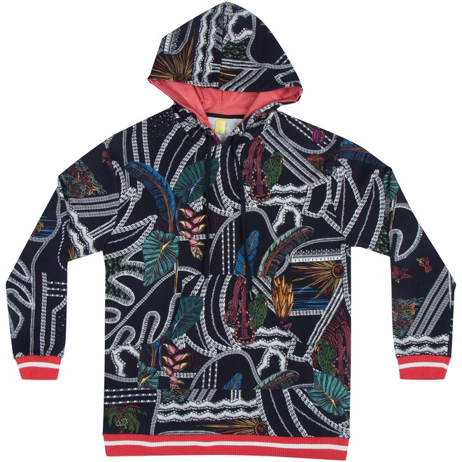 Ajuste por CordãoGola Tira interna que diminui o atrito de contato junto à pele Barra Canelada Punho Canelado Estampa Personalizada Gramatura Média Composição do Tecido Poliéster