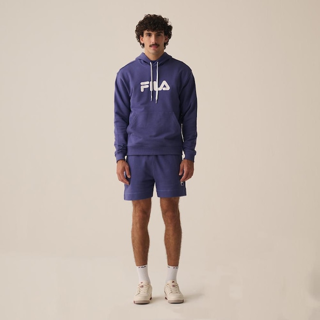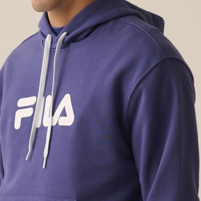 Blusão masculino confeccionado em moletom sem felpa de algodão com poliéster. Modelagem comfort, mais solta no corpo, com capuz transpassado e manga longa. Possui bolso canguru frontal, punhos e barra em ribana, acabamentos pespontados e logo F-Box monocolor em silk aplicado na parte frontal esquerda superior.