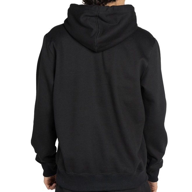 Moletom Billabong fechado 270g, com etiquetas personalizadas, bolso canguru, capuz com forro em moletom, cordão de algodão cru e ribana na barra e nos punhos.