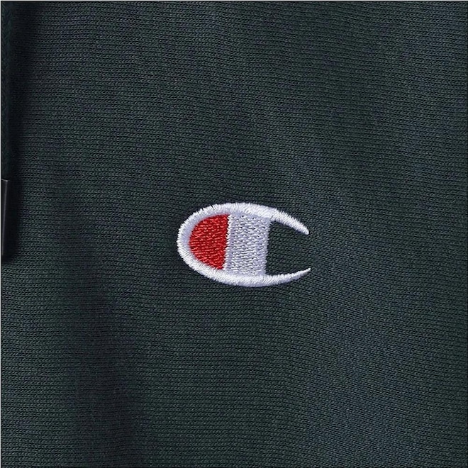 - Escrita frontal bordada (C grande chenille no peito), logo C em patch no punho assinatura da linha Champion Life ReverseWeave