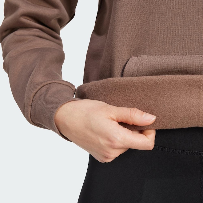 Este moletom com capuz Terrex é ideal para mantê-la aquecida, seja em uma caminhada relaxante após uma aventura épica ou durante um momento descontraído no sofá. O fleece misto de algodão macio e os punhos canelados bloqueiam o frio. Vista o capuz e continue. Ao escolher reciclados, podemos reutilizar materiais que já foram criados, o que ajuda a reduzir os resíduos. As opções de materiais renováveis também nos ajudam a reduzir a nossa dependência de recursos finitos. Os nossos produtos feitos com uma mistura de materiais reciclados e renováveis contam com pelo menos 70% desses materiais no total.