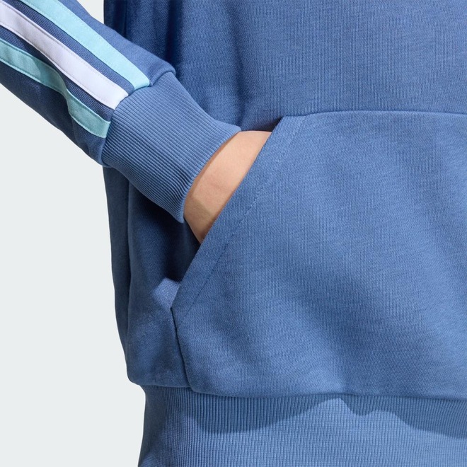 A cultura do futebol encontra o conforto do dia a dia com o moletom com capuz Argentina DNA Projetado para jovens fãs que vivem e respiram o belo jogo, este moletom com capuz oferece um toque moderno ao estilo clássico inspirado no futebol. Indo para a escola ou se preparando para uma partida com os amigos, ele é a escolha certa para diversas ocasiões. Com uma modelagem padrão e capuz ajustável, ele proporciona uma sensação confortável e aconchegante, uma ótima opção para brincadeiras ativas ou momentos de descanso descontraídos. Confeccionado em moletinho macio, oferece calor e conforto nos dias frios. O logo adidas Performance e a marca Três Listras icônicos conferem um toque extra de autenticidade, tornando-o um item essencial para jovens fãs do futebol. Este moletom com capuz é muito mais do que apenas uma peça de roupa. É uma declaração de paixão pelo futebol. Deixe as crianças abraçarem o amor pelo esporte com essa peça estilosa e versátil que combina perfeitamente a herança da moda esportiva com o design contemporâneo.