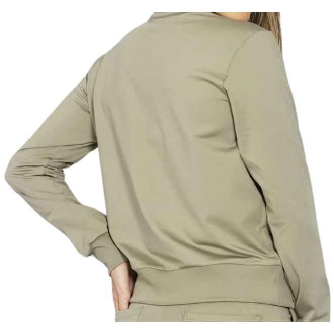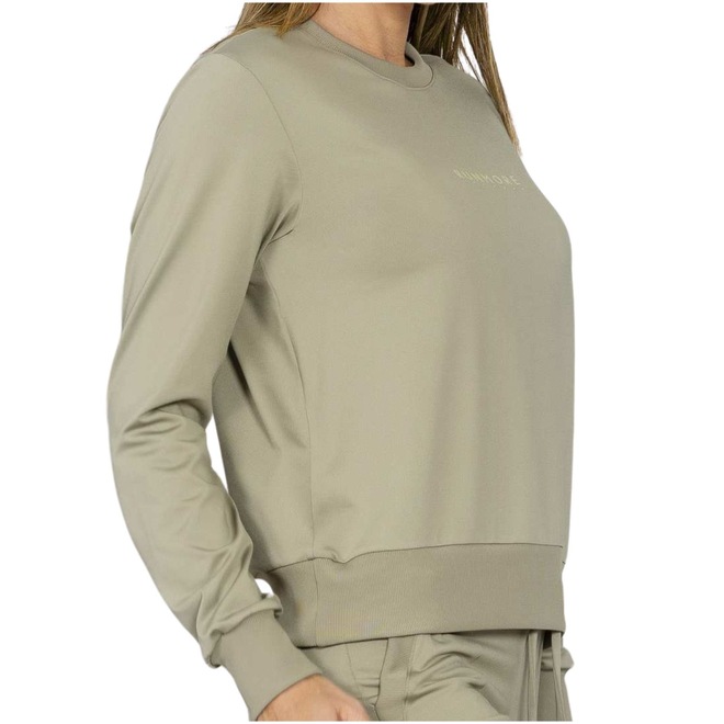 Os acabamentos em ribana no decote, punhos e barra acrescentam um toque de estilo diferenciado.Na parte frontal, a arte Run More com aplicação de cristais proporciona um detalhe sofisticado e elegante.Ideal para enfrentar os dias frios com charme e conforto.