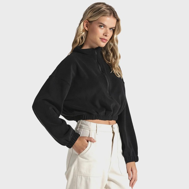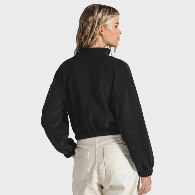 O Moletom Volcom Especial Soft Black é produzido em tecido Soft Fleece 96% Poliéster e 04% Elastano, modelagem cropped, barra e mangas com acabamento elástico, gola alta e zíper frontal. O tradicional logo Volcom bordado no peito.